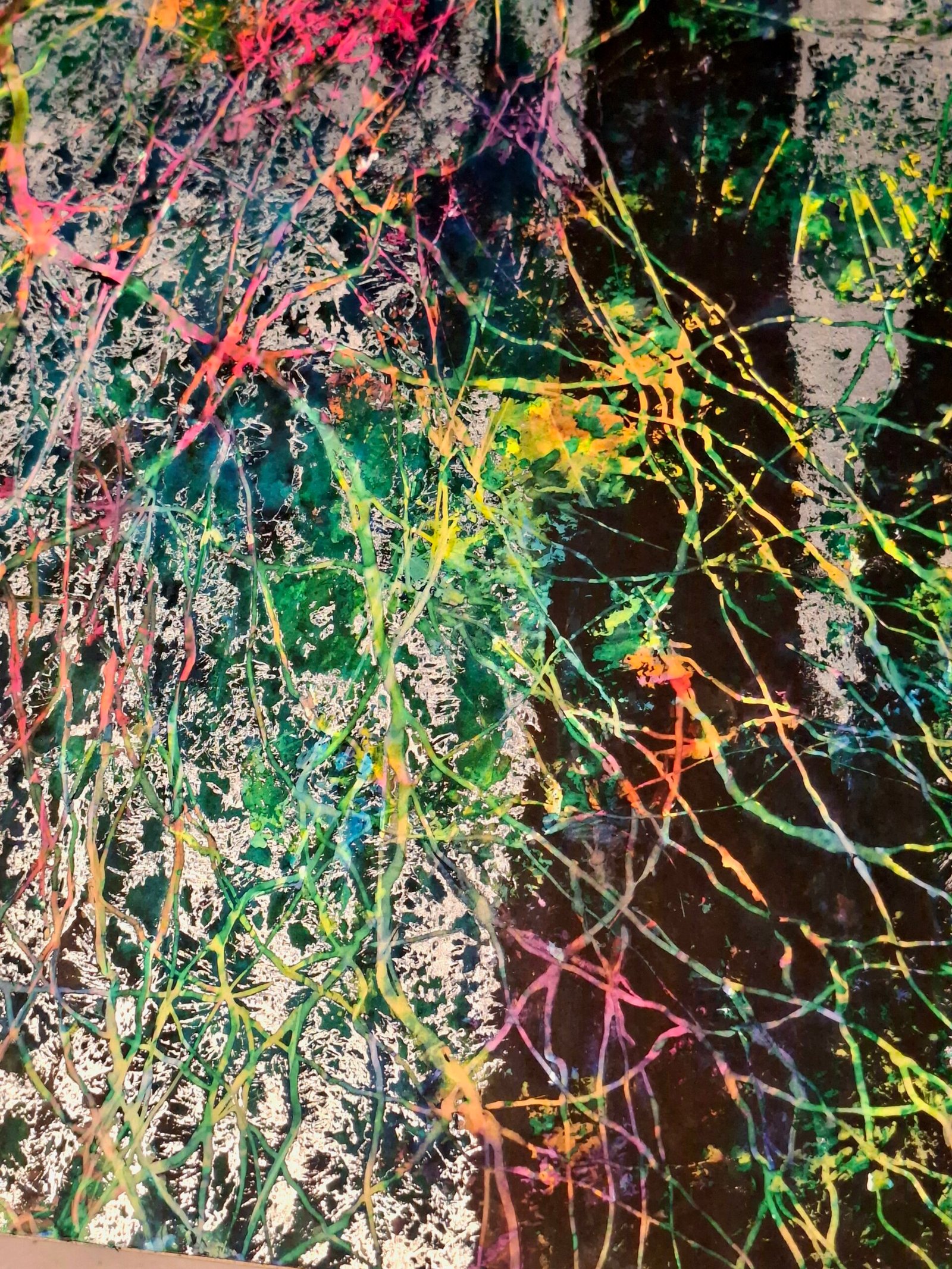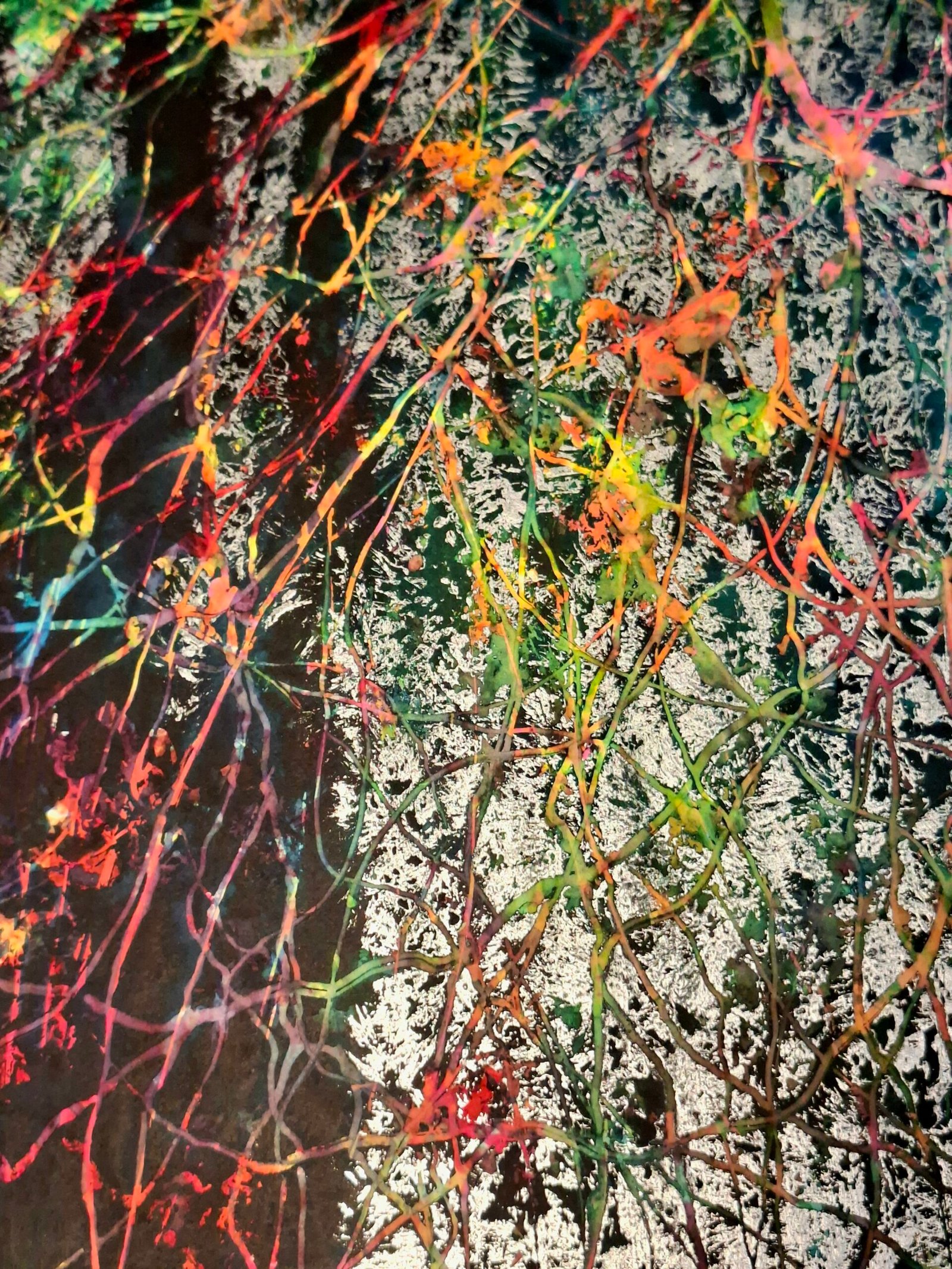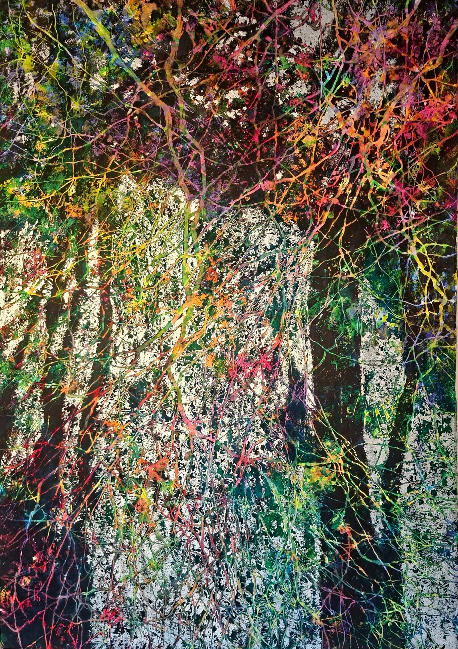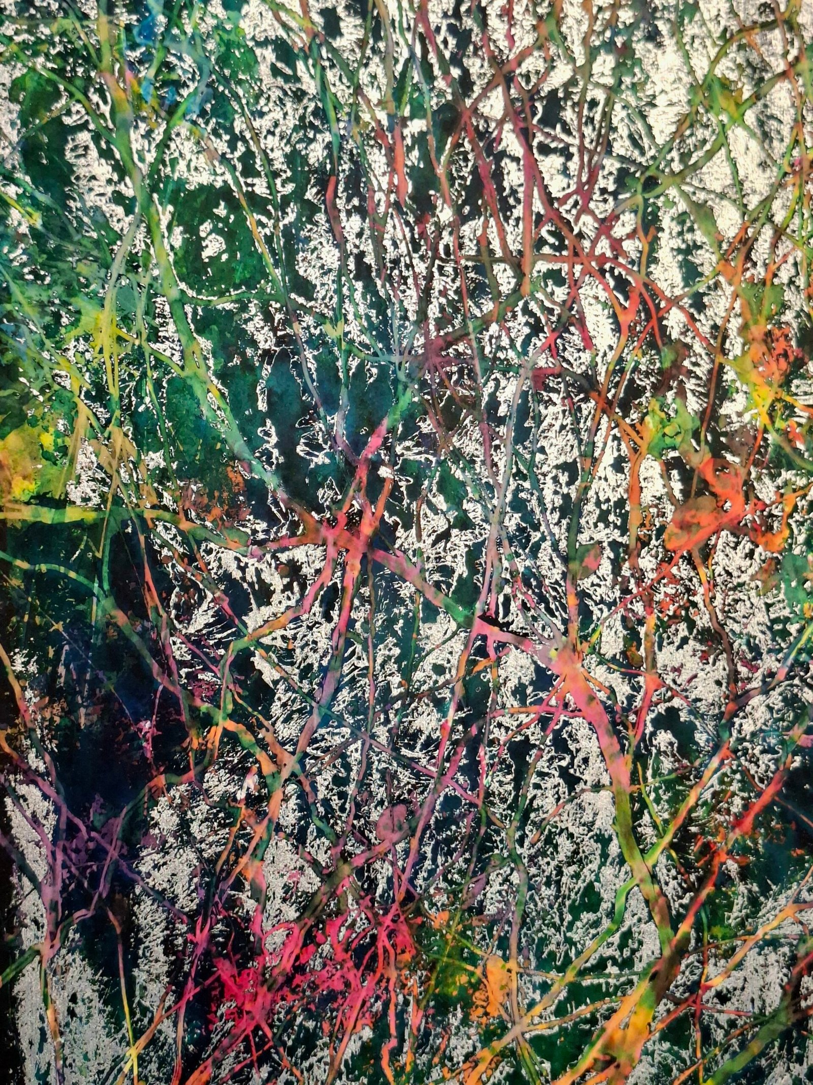 This is mixed media, watercolour combined with acrylic and gold leaves. Metal is quite different from colours and I find it quite fascinating to use. It brings some very special energy. I was inspired by very special place in nature reserve in south of Slovenia. It is so pure and full of magic. In this painting I wanted to capture not only the magic of that place but also of certain moment, when the beauty and serenety was reveiled to me. The tangled branches symbolize the complexity of growth and renewal, while the abstract, expressive strokes evoke a dreamlike energy. This painting breathes life and mystery, inviting your space to pulse with the hopeful, restless spirit of spring awakening. It’s a celebration of nature’s endless cycle and inner transformation.