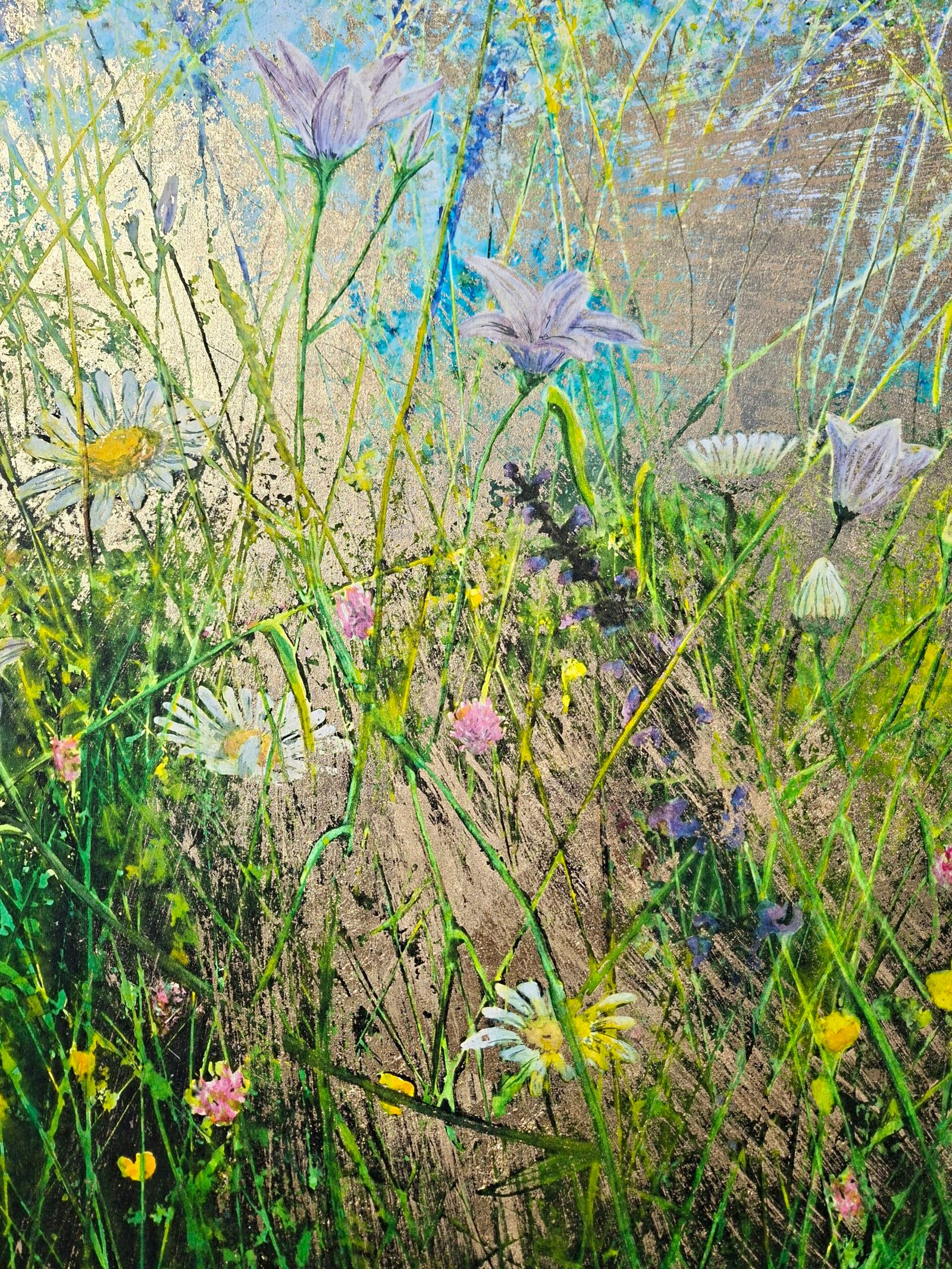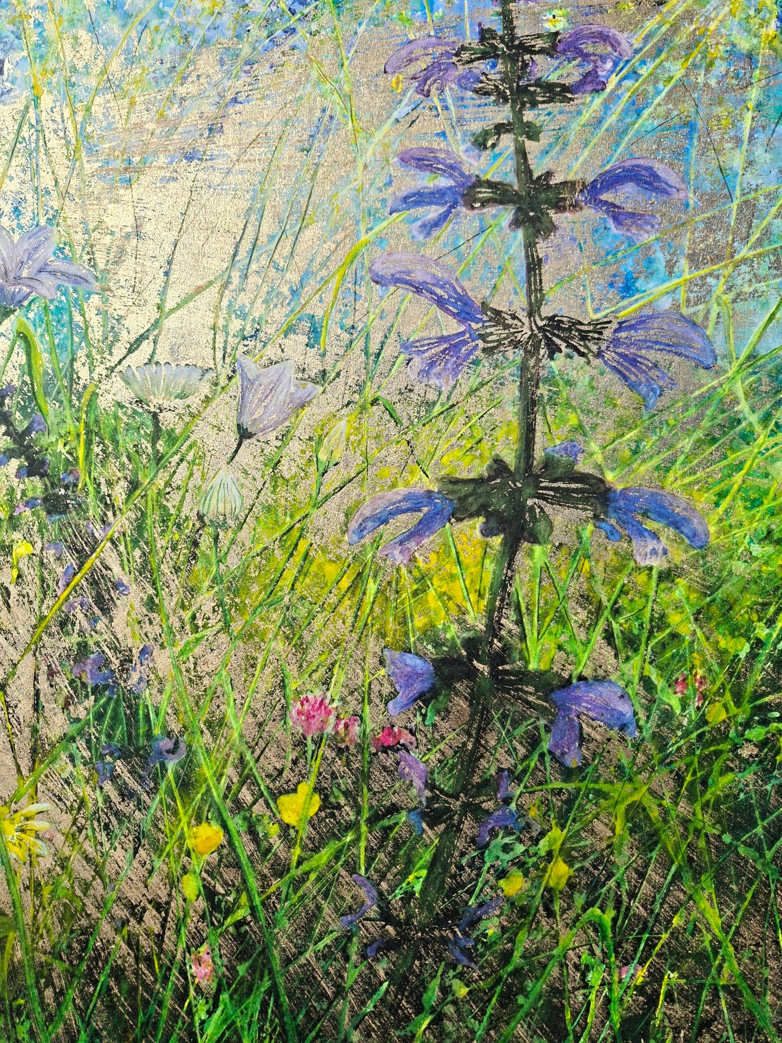 I painted this meadow some time ago, but I felt it wasn’t quite finished. It has been waiting for its moment ever since. Right at the transition from winter to spring, at a time when we all need more sunshine and the lighthearted playfulness that nature’s creatures bring us.